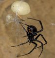 Black widow spider (Latrodectus hesperus) and egg sac. Photograph by Mark Chappell of University of California, Riverside.