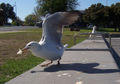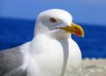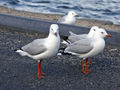 Gulls are seabirds in the family Laridae. They are most closely related to the terns (family Sternidae), and more distantly to the waders, auks and skimmers. Most gulls belong to the large genus Larus.They are in general medium to large birds, typically grey or white, often with black markings on the head or wings. They have stout, longish bills and webbed feet.Most gulls, particularly Larus species, are ground nesting carnivores, which will take live food or scavenge opportunistically. The live food often includes crabs and small fish.Apart from the kittiwakes, gulls are typically coastal or inland species, rarely venturing far out to sea. The large species take up to four years to attain full adult plumage, but two years is typical for small gulls.Gulls — the larger species in particular, are resourceful and highly-intelligent birds, demonstrating complex methods of communication and a highly-developed social structure. Certain species (e.g. the Herring Gull) have exhibited tool use behaviour. Many species of gull have learned to co-exist successfully with man and have thrived in human habitats.Two terms are in common usage among gull enthusiasts for subgroupings of the gulls: