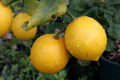The lemon, Citrus × limon, is a citrus tree, a hybrid of cultivated origin. The fruit are cultivated primarily for their juice, though the pulp and rind (zest) are also used, primarily in cooking or mixing. Lemon juice is about 5% citric acid, which gives lemons a sour taste; its pH is 2.3, so because of its acidity, lemon juice is commonly used in chemistry experiments.