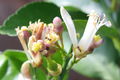 A lemon tree can grow to 6 m (20 ft) but is usually smaller. The branches are thorny, and form an open crown. The leaves are green, shiny and elliptical-acuminate. Flowers are white on the outside with a violet streaked interior. On a lemon tree, flowers and ripe fruits can be found at the same time.There are several varieties of lemon including Eureka, Lisbon and the Meyer Lemon, which is thought to be a hybrid.