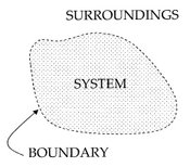 An important concept in thermodynamics is the “system”. A system is the region of the universe under study. A system is separated from the remainder of the universe by a boundary which may be imaginary or not, but which, by convention delimits a finite volume. The possible exchanges of work, heat, or matter between the system and the surroundings take place across this boundary. There are four dominant classes of systems: